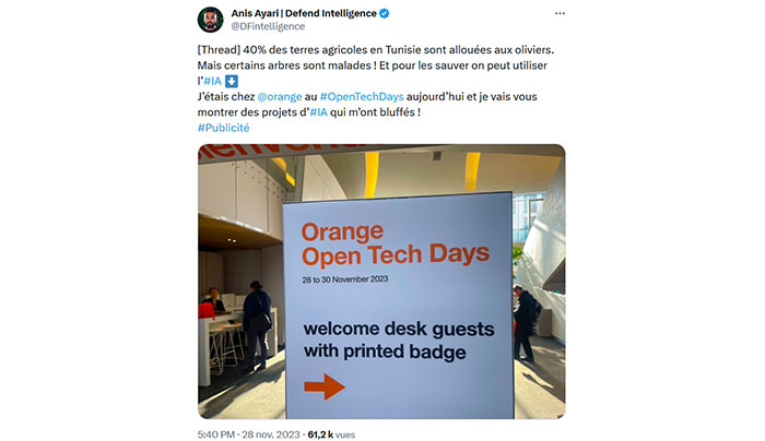 L’intelligence artificielle était également à l’honneur de cette édition, avec, ar exemple, le développement d’une application inscrite dans la #SmartAgri (agriculture) pour aider les exploitants d’olives à détecter les arbres malades, avancée significative qui permet aux petits exploitants de faire face et d’anticiper les problèmes causés par le réchauffement climatique.