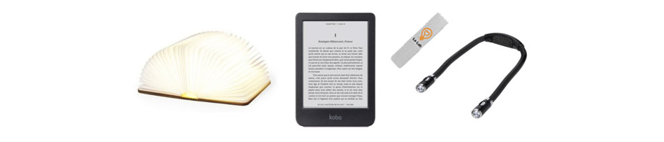 Il recevra : 1 liseuse Kobo 16 Go, 1 lampe en forme de livre, 1 marque-page magnétique et 1 lampe tour de cou flexible.